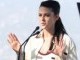 The star gives an impassioned speech saying progress for female film-makers has reversed in recent years.